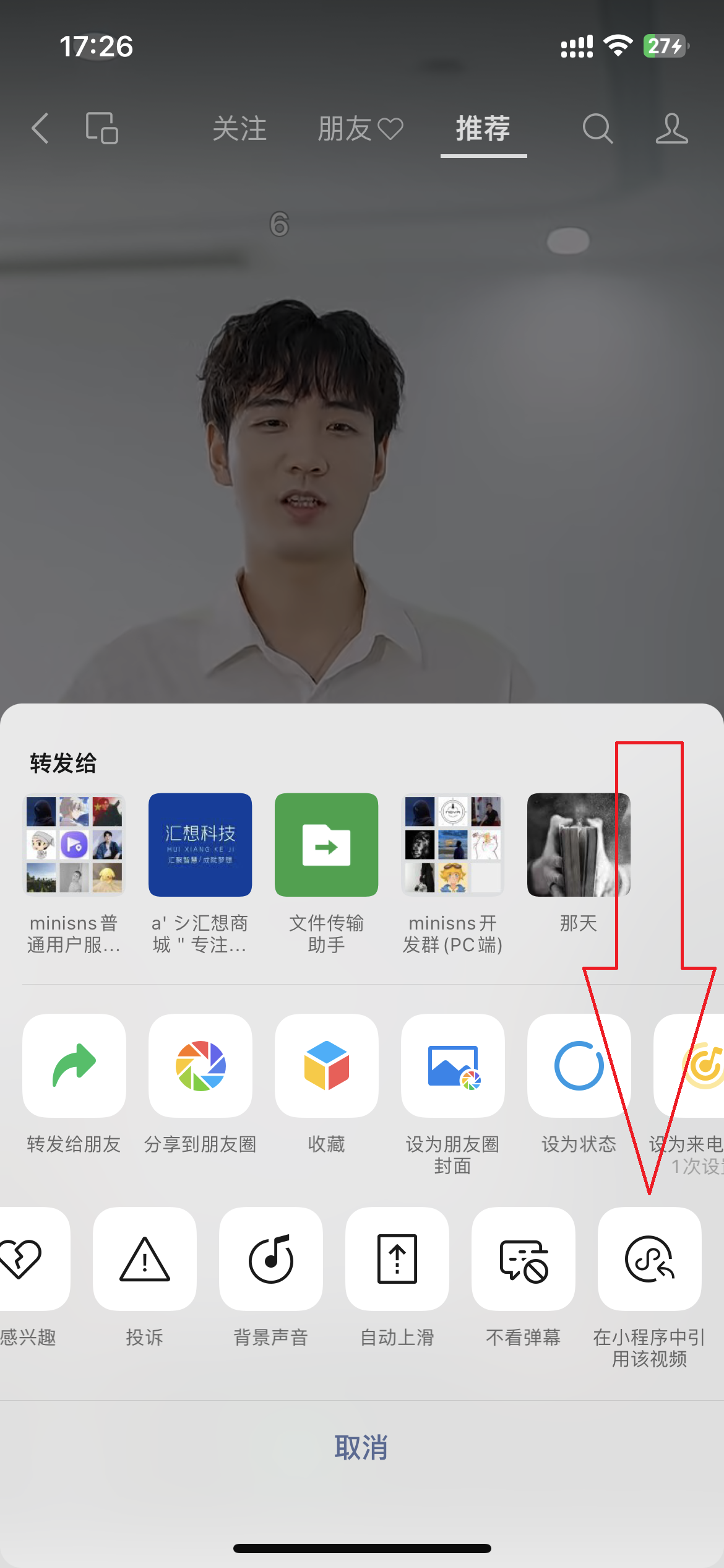 每次开启24小时之内,你在刷 视频号 的视频时,点击分享,滑动到最右边。