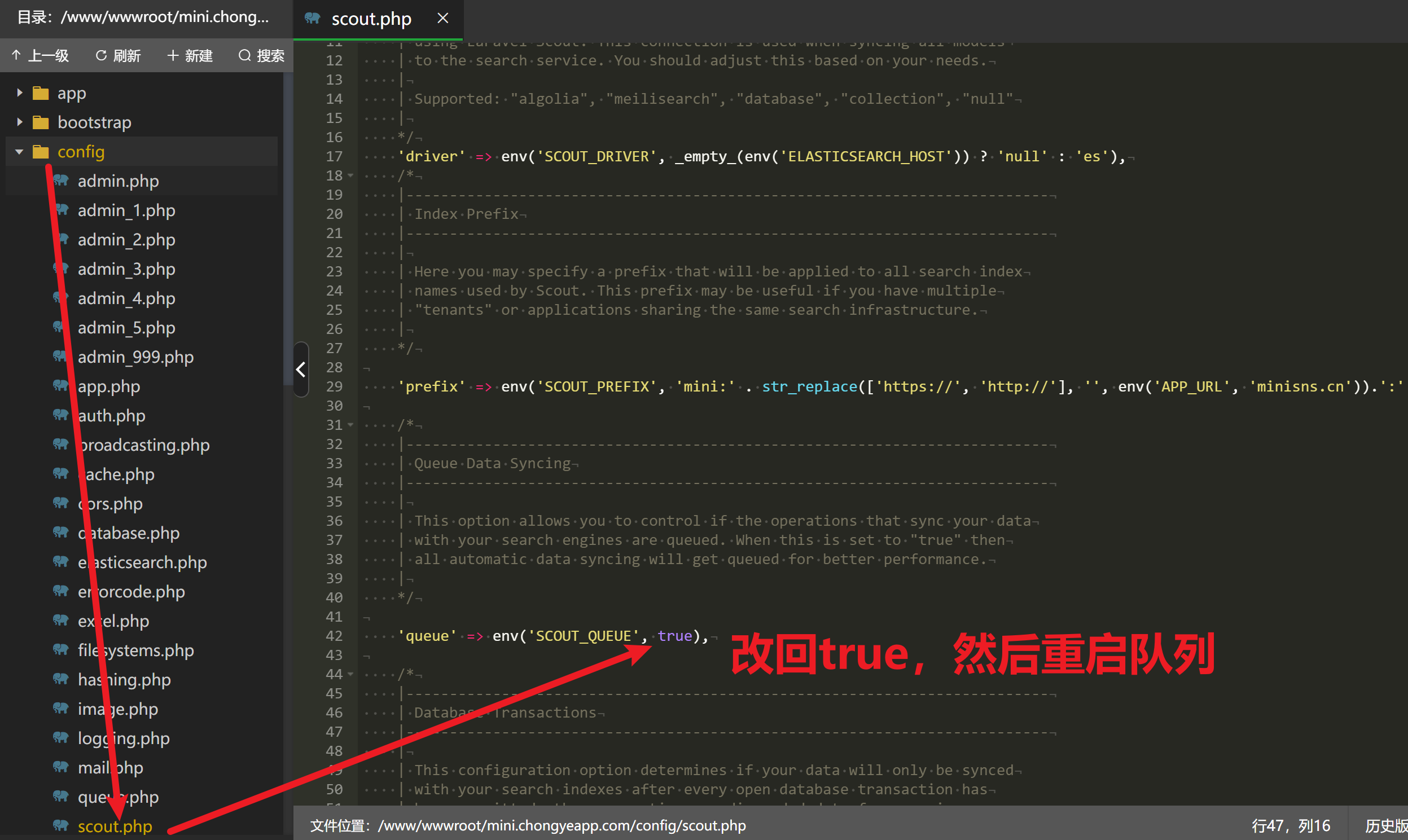 清除命令:php artisan scout:flush "App\Models\Posts\WxPost"php artisan scout:flush "App\Models\Circle\WxCircle"php artisan scout:flush "App\Models\User\WxUser"
